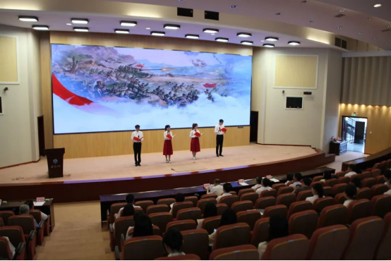 党日活动中,师生党员以沉浸式党课的方式,集体参观了学校习近平新时代中国特色社会主义思想现场教学基地,共同感悟思想伟力。集体观看了学校两部原创示范微党课《校史里的红色基因》《你的征程 我来传承》,一同感受烽火中辽大人的家国情怀,一同从抗美援朝精神中汲取奋进力量。青年党员以原创诗歌《我们的百年》,追溯党的历史,礼赞百年荣光,一声声抑扬顿挫、铿锵有力的朗诵声在会场久久回荡,将党日活动推向高潮。